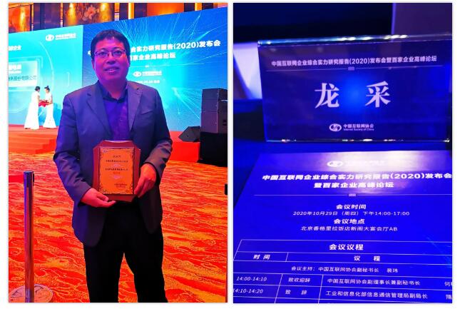 會上公布了2020年中國互聯網綜合實力前百家企業名單,阿里、騰訊、美團、百度、京東、網易、拼多多、滴滴、字節跳動、騰訊音樂等互聯網企業進入前10。憑借卓越的技術研發實力及持續的互聯網創新能力、多向產業鏈產品服務生態、互聯網業務創新布局等亮眼表現,龍采科技集團實力入圍中國互聯網綜合實力企業榜單,位居第三十八位!龍采科技集團副總裁吳志強出席本次會議。