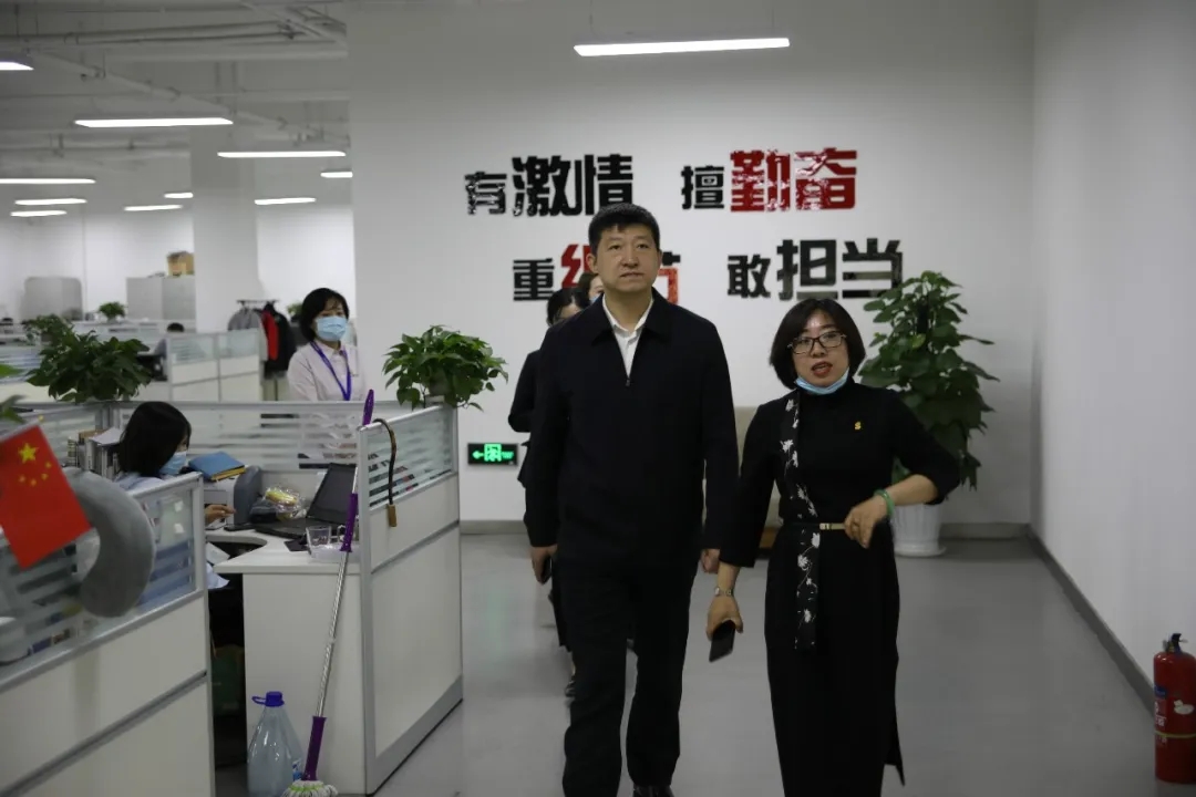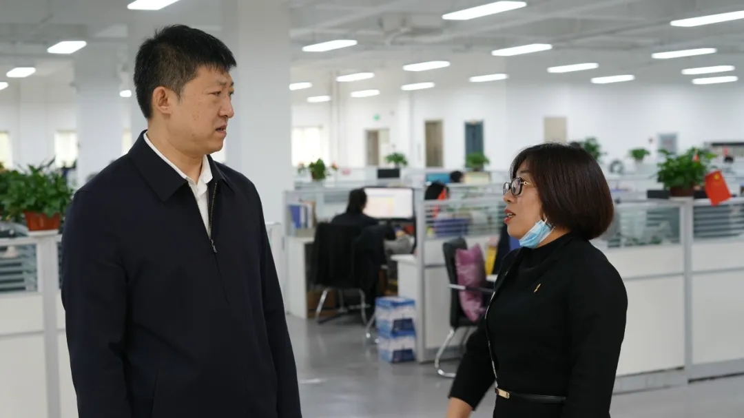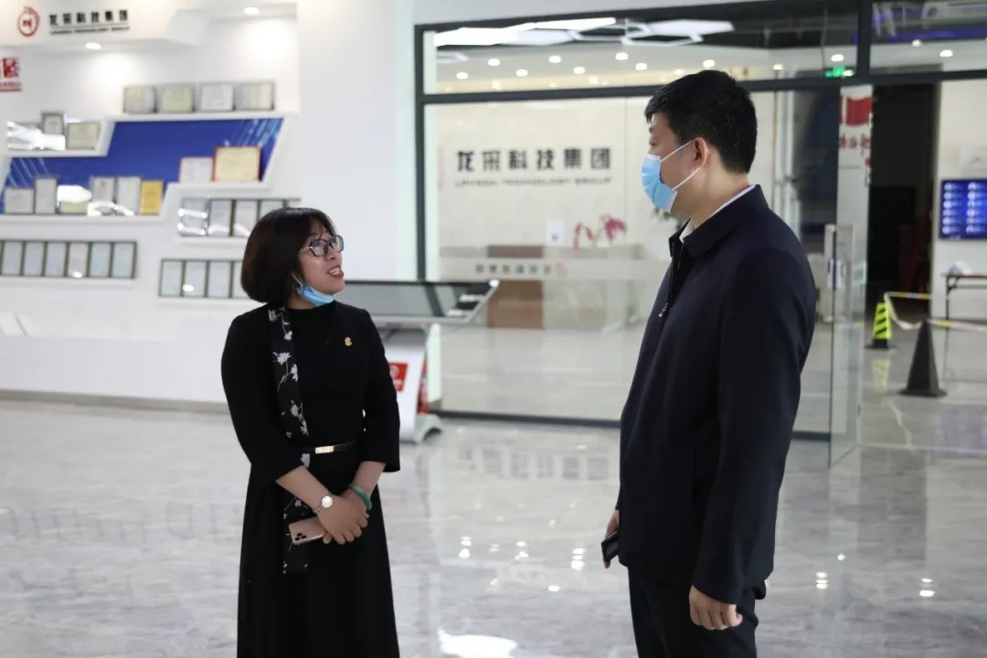 隨后,來訪領導一行參觀了集團的黨建文化墻以及辦公環境,張總詳細介紹了龍采的黨建工作、人員架構以及主要業務。道里區區長董繼文詳細詢問了企業復工復產的人員安排、防控措施及業務發展等情況,對龍采疫情防控工作及業務發展實力給予高度肯定。他也再三強調,要在保證安全防護的同時,加快業務發展,確保疫情防控期間提供高效高能的互聯網服務。