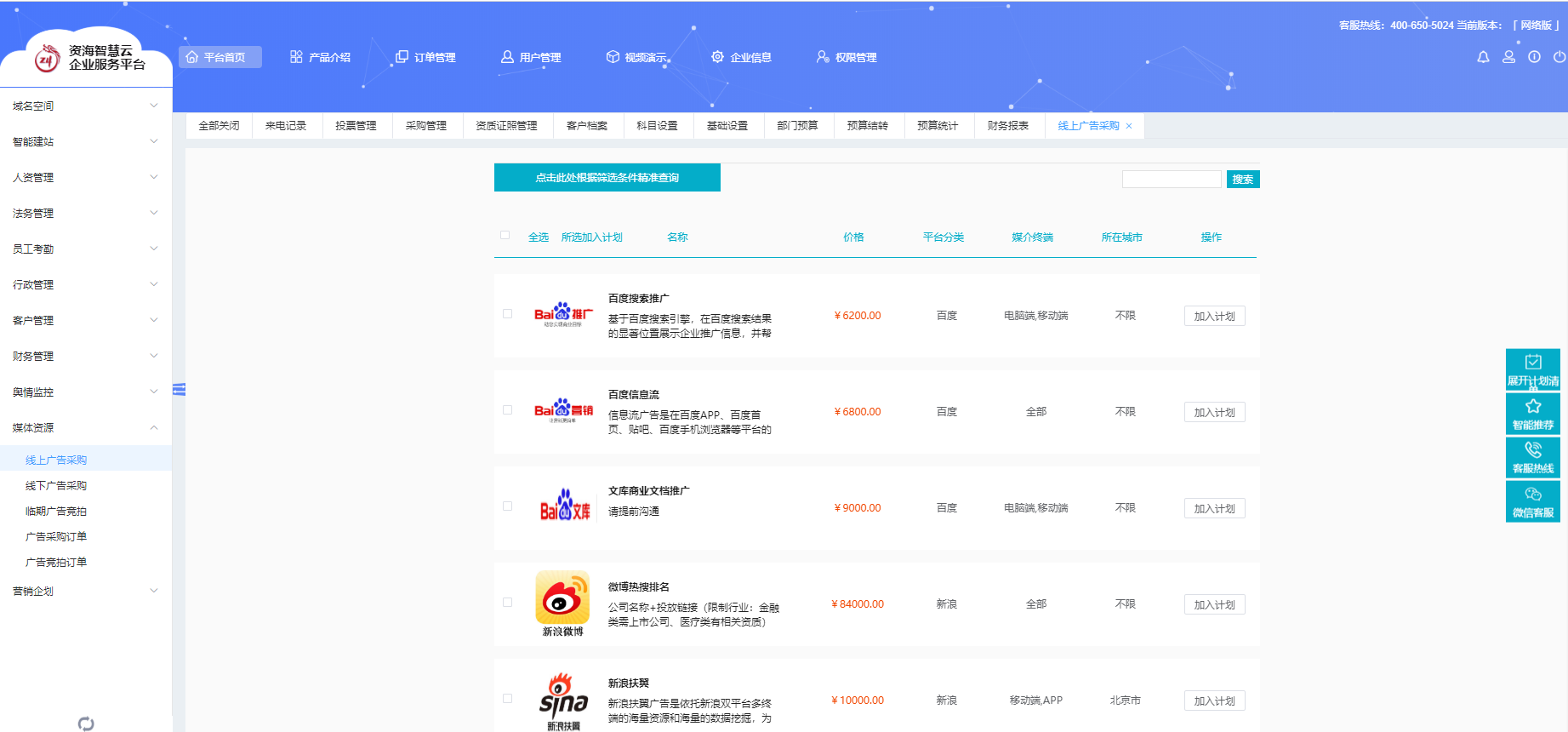 線上廣告資源采購、線下廣告資源采購、臨期廣告競拍、企業服務代辦。