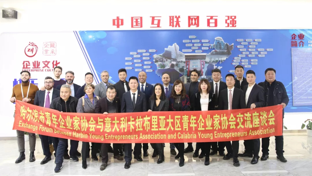 2020年1月7日,意大利卡拉布里亞大區商協會主席、卡拉布里亞大區青年企業家協會會長弗朗西斯科·維亞皮亞納一行11人來到龍采科技集團,與哈爾濱市青年企業家協會會員代表進行了友好交流座談。團市委副書記王洪新,團市委常委、統戰和社會聯絡部部長、市青聯秘書長、市青企協秘書長陳殿龍,市青企協會長、龍采企業董事長楊春波出席活動。
